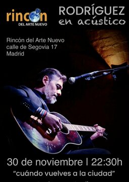 El cantautor barcelonés Alberto RODRÍGUEZ vuelve a cantar en Madrid. Será su 7a vez en 5 años. Esta vez lo hará en el histórico Rincón del Arte Nuevo, promocionando su nuevo single que saldrá en todas las plataformas digitales en otoño.