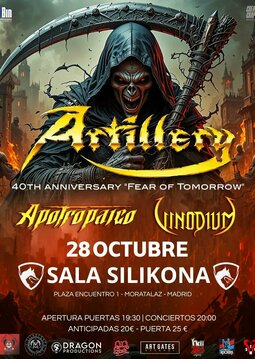 ARTILLERY: la mítica banda danesa pionera del thrash metal europeo, conmemora el 40 aniversario de su primer disco titulado "Fear Of Tomorrow", lanzado al mundo en el año 1985, y lo celebrará con un tour de 8 fechas por toda la península Ibérica.